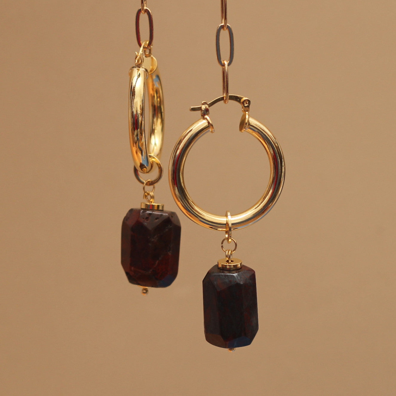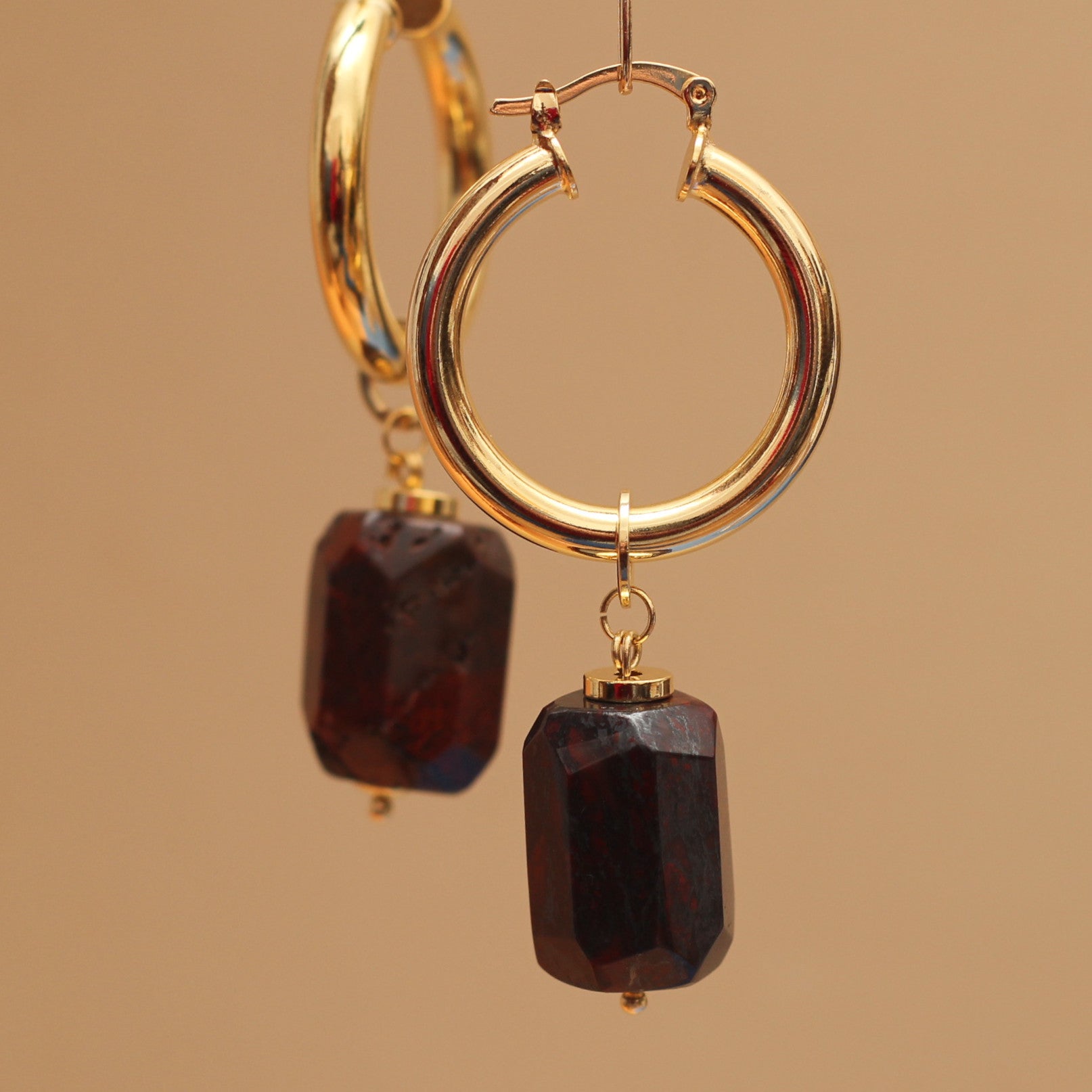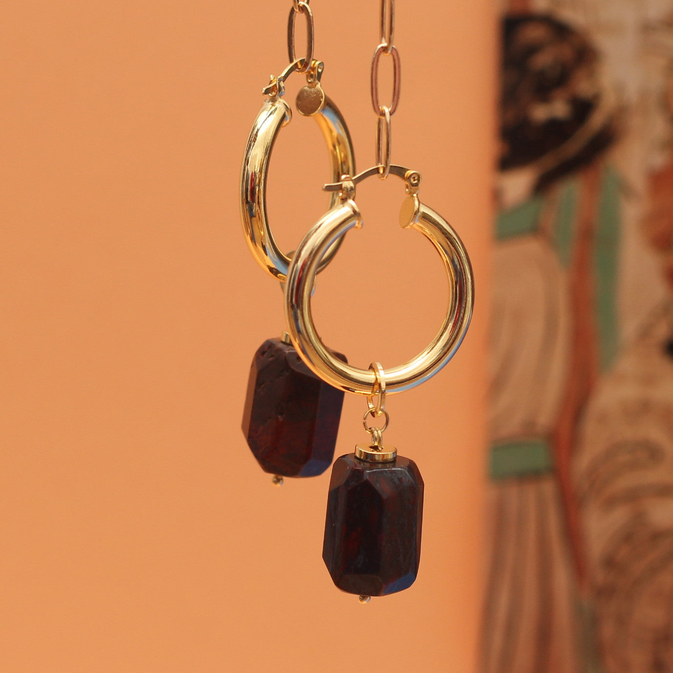 Inspirado nos tons quentes da natureza, o Brinco Âmbar combina o brilho intenso do banho com a imponência da pedra marrom facetada. Seu design em argola clássica ganha vida com o toque rústico e elegante da pedra natural, criando uma joia que é puro charme e personalidade.