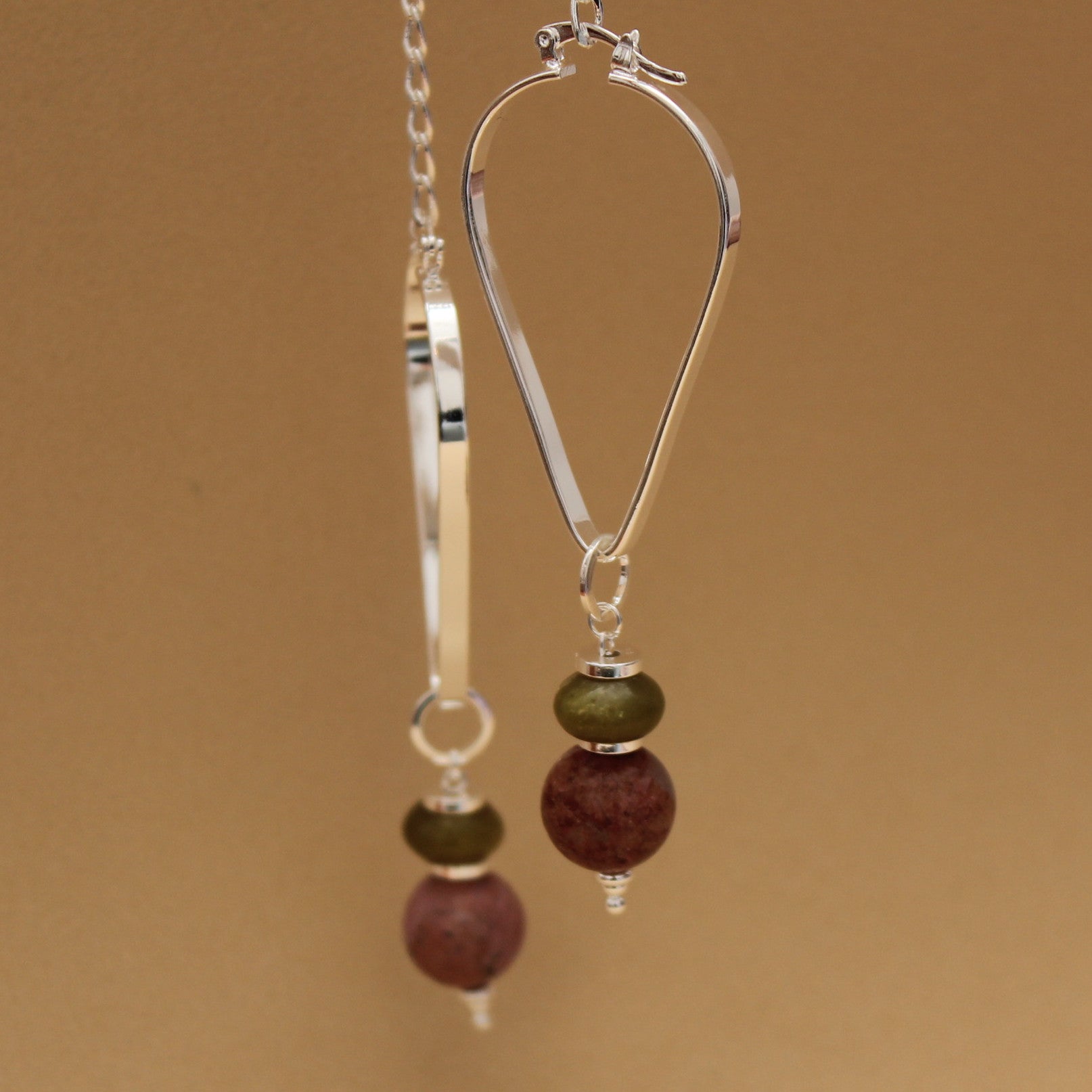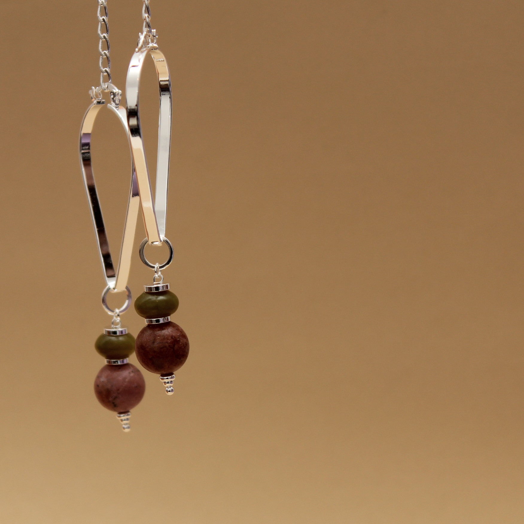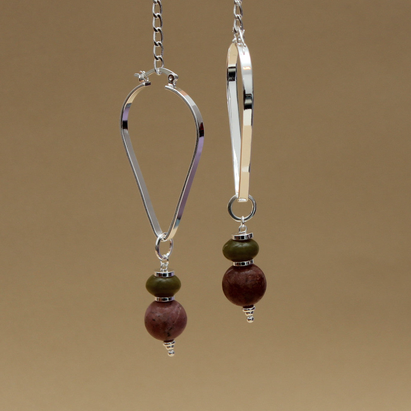 Inspirado nas cores e formas da natureza, o Brinco Essência da Terra une a leveza do banho de ródio ao charme rústico das pedras em tons terrosos e esverdeados. Seu design alongado e fluido transmite movimento e harmonia, refletindo a força e a serenidade de quem o usa.