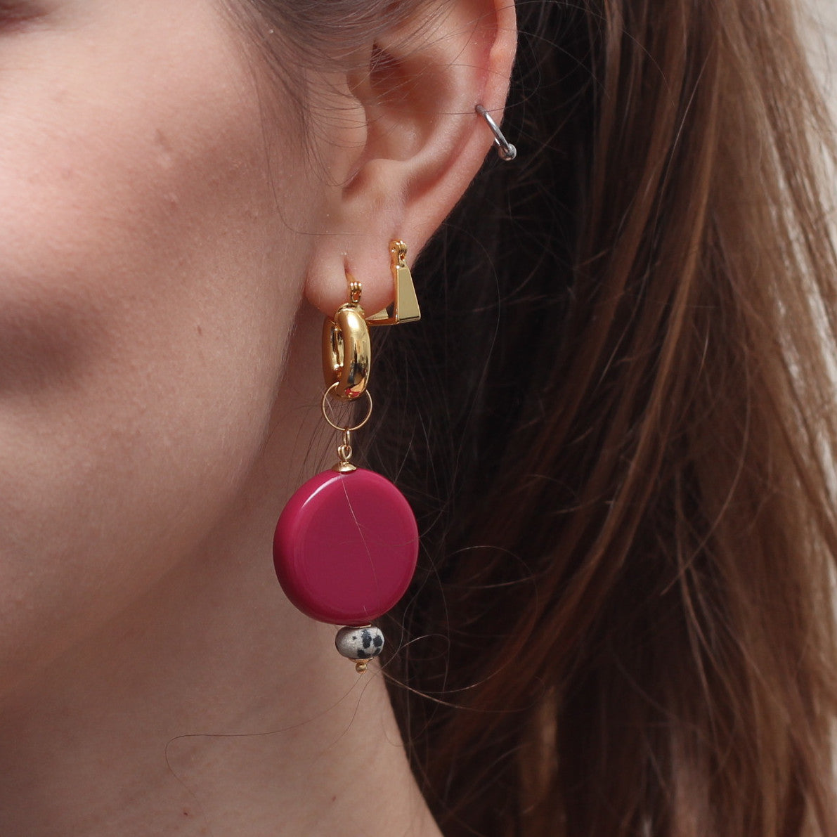 O Brinco Scarlet é a tradução perfeita da elegância vibrante. Com pedras em vermelho cereja e detalhes em banho de ouro 18K, a peça combina intensidade e sofisticação. O contraste com a pequena pedra natural pontua o design com equilíbrio e leveza.