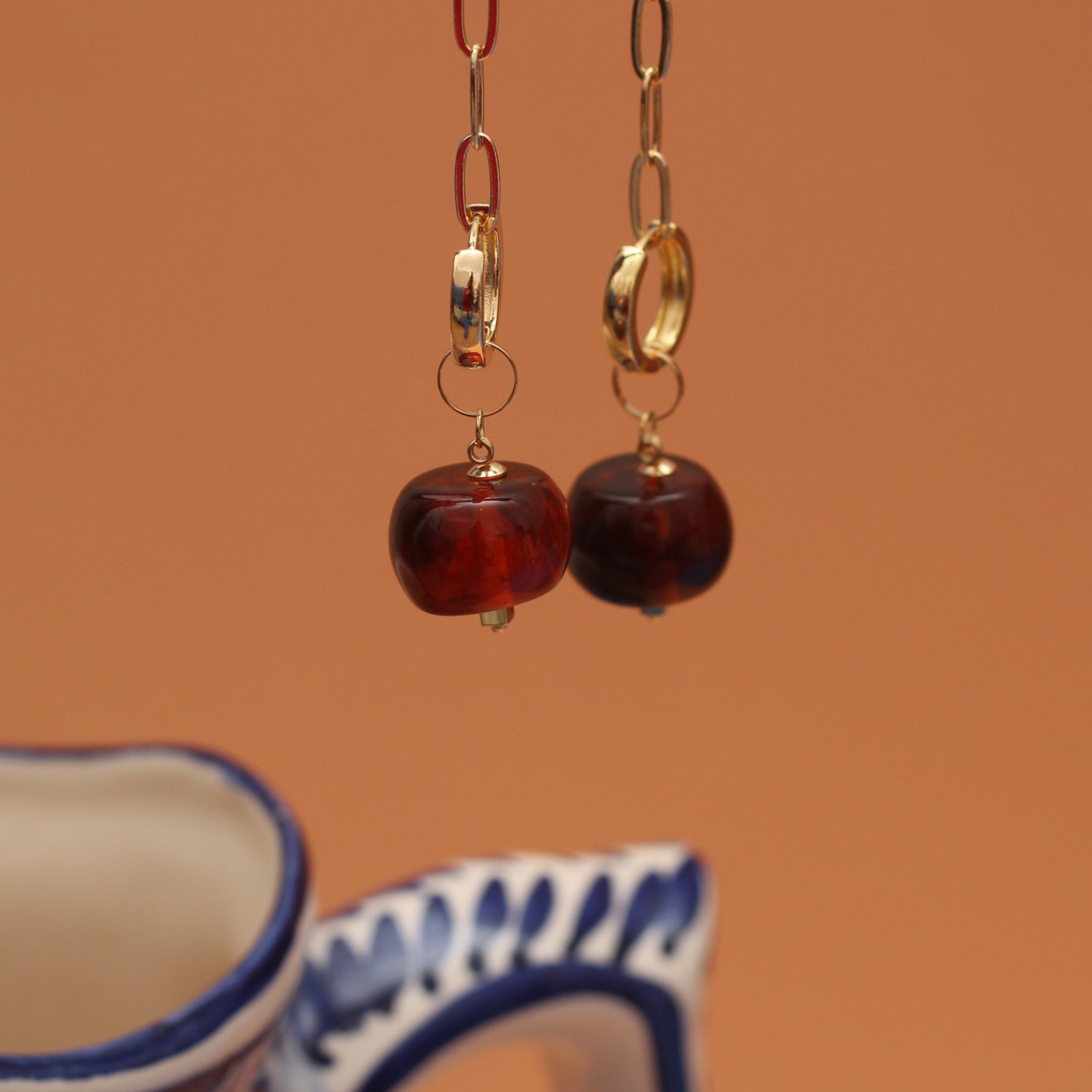 Inspirado na força e na beleza das pedras preciosas, o Brinco Granada combina o calor do banho de ouro 18K com o tom profundo da pedra em vermelho translúcido, lembrando a intensidade da granada natural. Seu design arredondado traz equilíbrio e sofisticação, criando uma joia que é puro magnetismo.